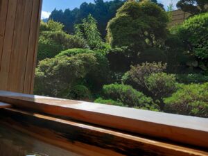 朝食を食べ、もう一度名残惜しい部屋付き露天風呂に入る。